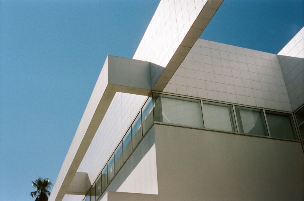 I have not been able to find details of who designed the building but it has similar themes (at least in my eyes) to Meier’s Getty Center in Los Angeles.