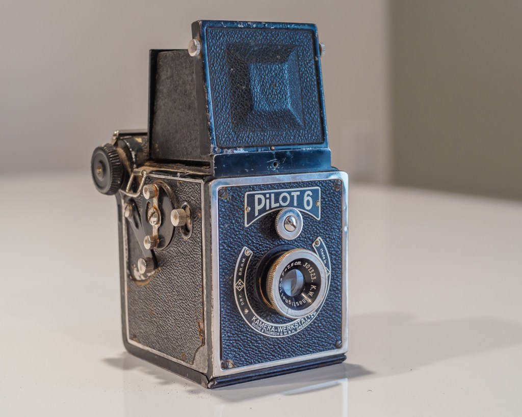 It all started while perusing an auction site; no not that one, another lesser known one that benefits charity. While browsing I found a bundle of 10 or so uninteresting cameras but hidden to the side of one of the pictures was an interesting looking box-like camera with ‘Pilot 6’ emblazoned on the front. I don’t know why I picked up on this or why it took my fancy. The description of the lot was sparse and did not mention this camera at all. The only photo in which you could see any detail, only really showed about three-quarters of the front as the focus of the image was another camera entirely and this was tucked in behind.