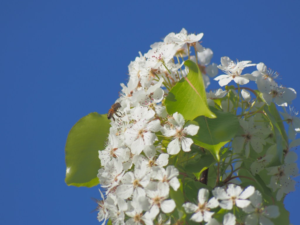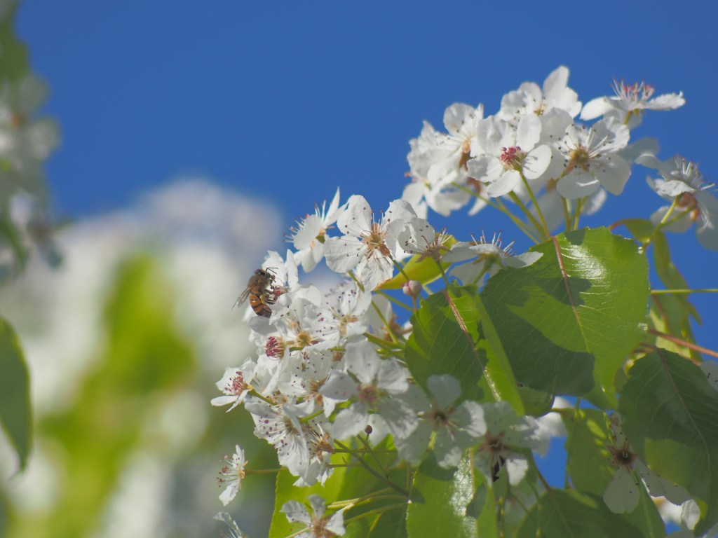 This time of year gives us the brief wave of blossom on the trees that line our street and the bees take advantage of this bounty… standing under the tree you are truly overwhelmed by the sound of humming from countless bees (and no doubt other insects).